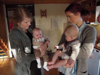 Jag fick nu hålla Adam för första gången!!! Han har blivit jättestor sen jag såg honom när han var ca 7 veckor gammal tror jag. Seb var dunderförkyld och Johanna vågade inte chansa då dom är lite känsliga när dom är så små. Han smilade så fort man pratade med honom och var bara för söööööt!!!